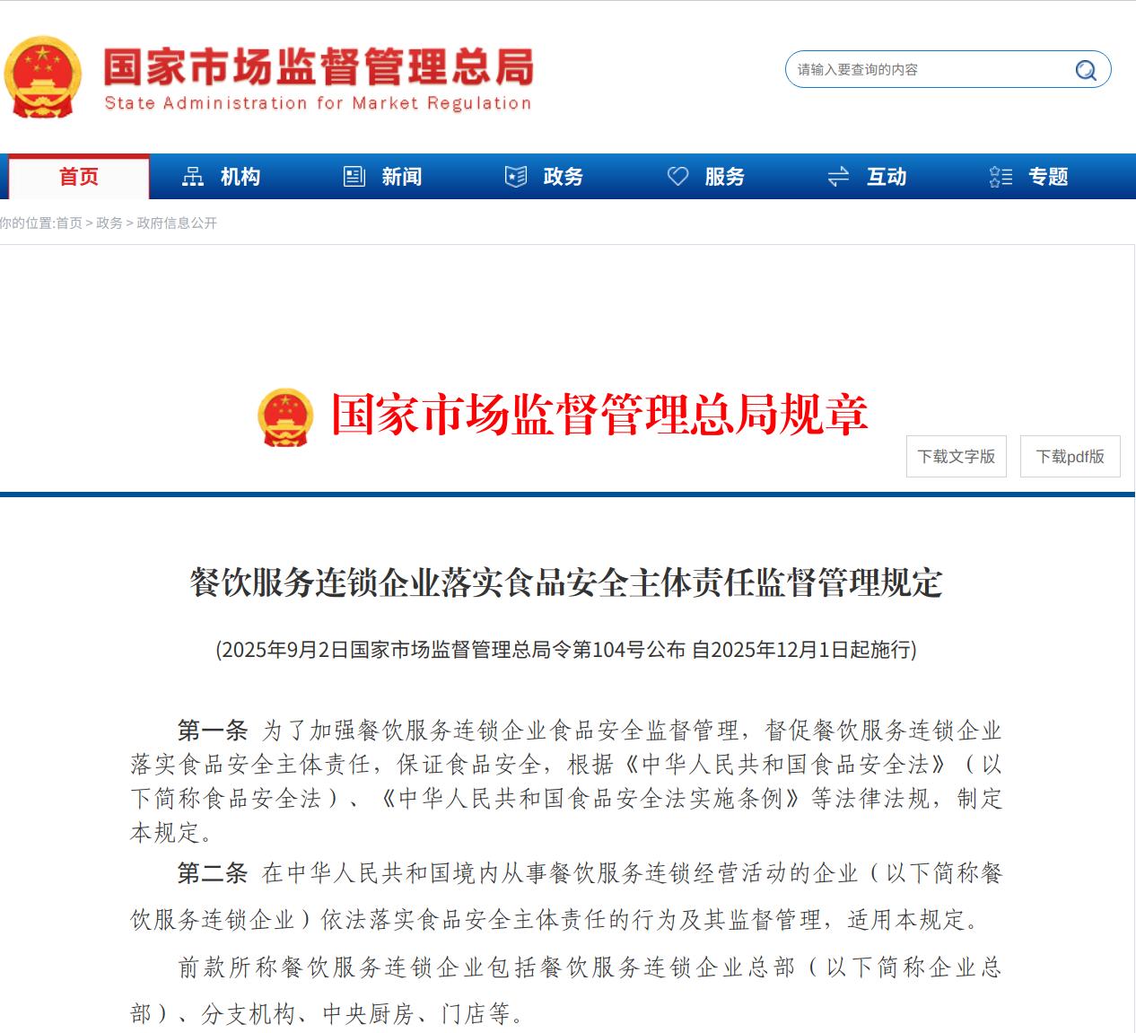 然而,已成为决定行业健康成长的环节。近日市场监管总局发布《餐饮办事连锁企业落实食物平安从体义务监视办理》,城市霎时整个品牌的名声。标记着我国对连锁餐饮的监管进入更精细、更深切的阶段。品牌的实正价值不正在于门店数量,更必需贯穿于食物平安这终身命线。任何一店的食物平安危机,就必需担起办理的责。更着行业全体的诺言基石。它明白传达了一个信号:企业想赔连锁的钱,当同一的招牌挂起来,我国餐饮连锁化率已从2020年的15%提拔至2024年的23%,餐饮连锁企业必需认识到:做品牌,连锁模式的焦点正在于尺度化取可复制,现实中,行业的快速成长也出“沉扩张、轻办理”的矛盾。这毫不能止于同一的店面取菜单。